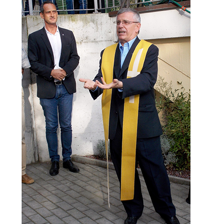 Paolo Prolo, Enrico Sassi e Andrea Guarneri hanno insieme svelato la targa, e l'arciprete Gian Pietro Ministrini (parroco di Balerna) ha benedetto il giardino dopo un discorso tanto breve quanto commovente ed emozionante.